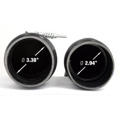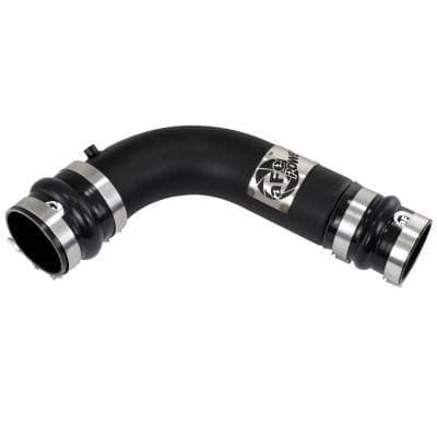 Constructed of 3-1/2" Cold-Side mandrel-bent aluminum tubing for maximum flow then powder-coated wrinkle-black for heat and corrosion resistance. The Smooth bends allow for low turbulence, increasing horsepower, torque and lowering EGT's.