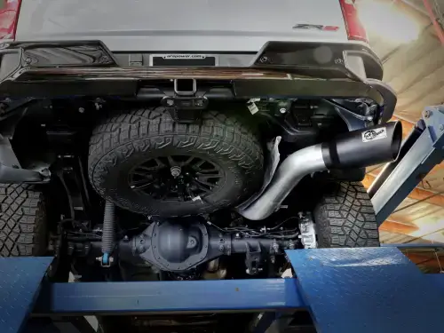 Finishing off this exhaust system is a 7" diameter black 304 stainless steel clamp-on exhaust tip. The tip features an aFe POWER logo plate riveted on for a unique style.