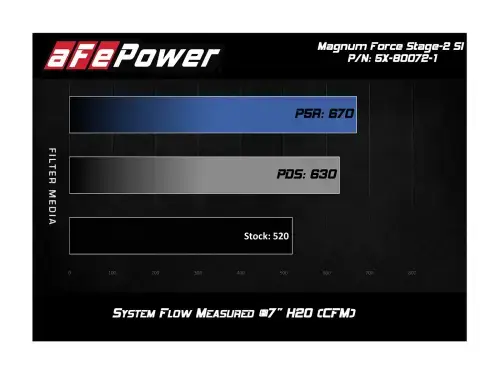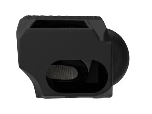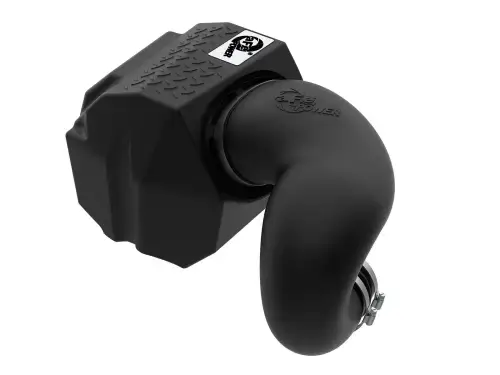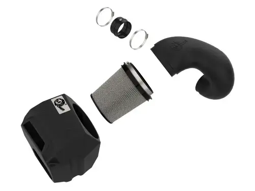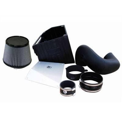 The included massive air filter is surrounded by a XLPE (cross-linked polyethylene) polymer housing that minimizes warm engine air for maximum performance. It utilizes the vehicle's OE air inlet and includes an additional auxiliary air inlet to bring in air from the front of the vehicle when under power.