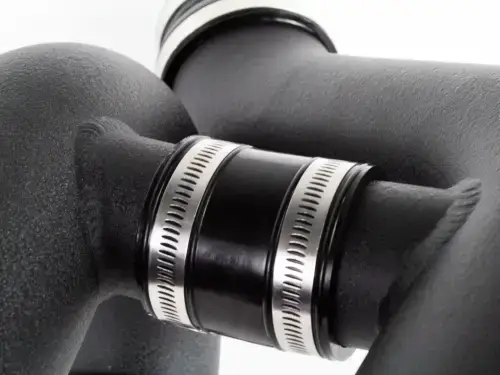 This intake uses a dual intake tube design with an H-Pipe balance tube to balance intake tube pressures and maximize air flow and velocity.