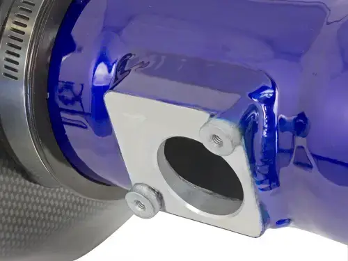 One-Piece 3-1/2" Mandrel-Bent Electric Sparkle Blue Powder-Coated Intake Tube color matches the intake manifold and directs unrestricted airflow from the massive filter to the throttle body for more horsepower and torque.