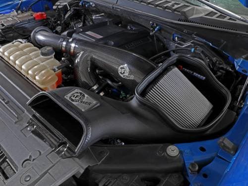 The included massive air filter is surrounded by an open-element XLPE (Cross-linked Polyethylene) polymer housing that minimizes warm engine air for maximum performance. Its open design allows for easy viewing of the air filter, and an aggressive air intake sound. The built-in air intake scoop captures cold air directly from the top of the radiator support thanks to its huge opening.