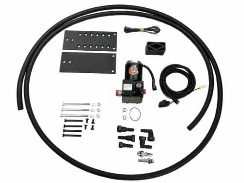 This is the Raptor-4G RP-100 fuel system for the 1992-2000 6.5L Diesel. This system mounts to the frame rail using the supplied sandwich plate mounting system. The suction splices into the factory fuel line on the frame rail. The pressure side splices into the factory injection pump supply line on the frame. These pumps are internally regulated and do not require a return line. This is a 100GPH (Gallon Per Hour) fuel system for stock fuel trucks. Check out our installation manual for a list of parts that are included with this kit.