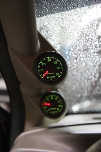 HOME / PRODUCT / Auto Meter Factory Match 2 Gauge Kit, Ford (1999-07) Super Duty, Black Face/Red Pointer/Green Lighting (35psi Boost, EGT)
