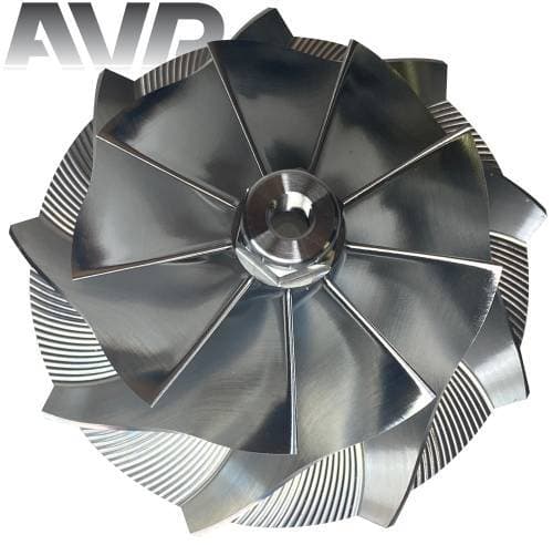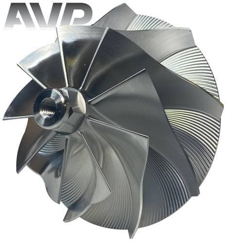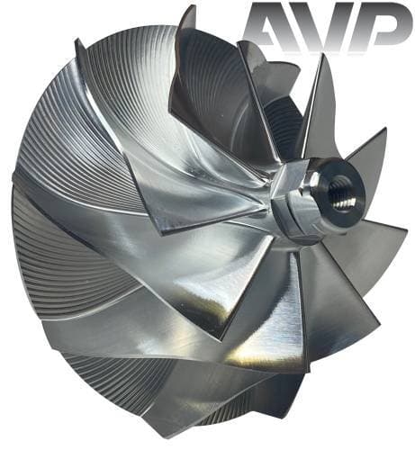 These billet compressor wheels are much stronger than cast compressor wheels and are designed to flow more air. With a more aggressive blade design and the nose and hub designed to be significantly smaller allowing for larger blade size. The increase of blade surface area allows them to flow more air into the engine. This more efficient wheel lowers the intake temperatures to give you more horsepower and allowing you to stay in the throttle longer.