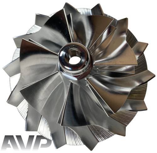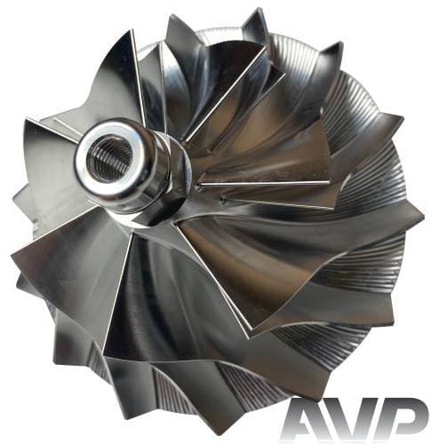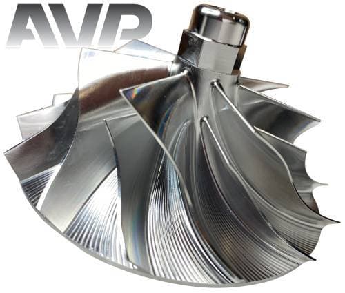These billet compressor wheels are lighter and much stronger than cast compressor wheels and are designed to flow more air. With a more aggressive blade design and the nose and hub designed to be significantly smaller allowing for larger blade size. The increase of blade surface area allows them to flow more air into the engine. This more efficient wheel lowers the intake temperatures to give you more horsepower and allowing you to stay in the throttle longer.