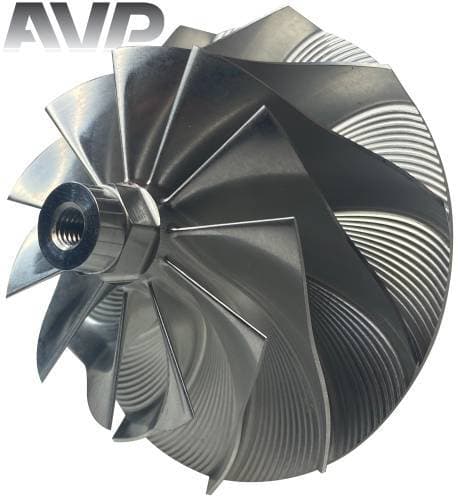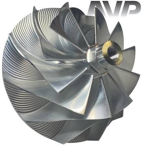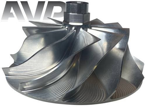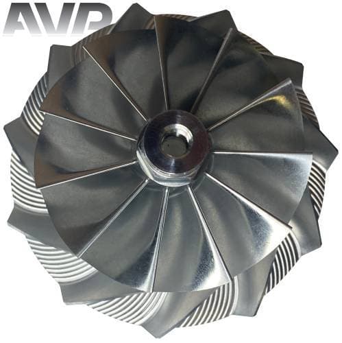 These billet compressor wheels are lighter and much stronger than cast compressor wheels and are designed to flow more air. With a more aggressive blade design and the nose and hub designed to be significantly smaller allowing for larger blade size. The increase of blade surface area allows them to flow more air into the engine. This more efficient wheel lowers the intake temperatures to give you more horsepower and allowing you to stay in the throttle longer.