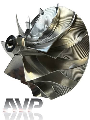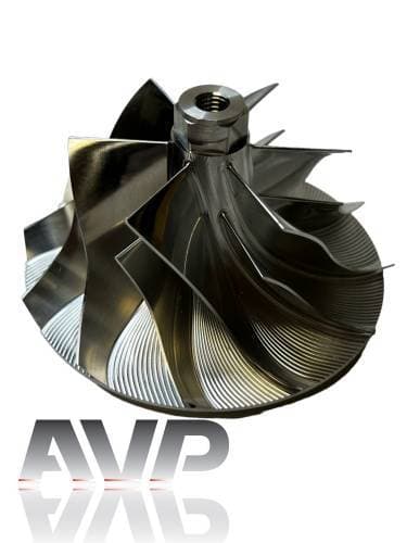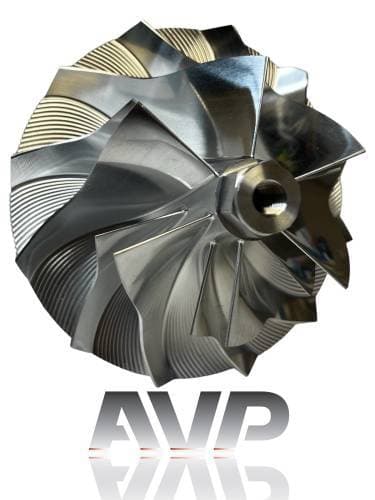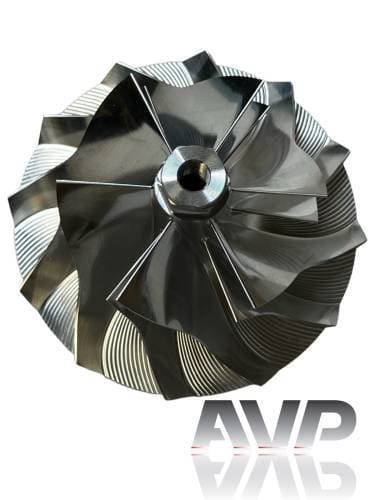 These billet compressor wheels are lighter and much stronger than cast compressor wheels and are designed to flow more air. With a more aggressive blade design and the nose and hub designed to be significantly smaller allowing for larger blade size. The increase of blade surface area allows them to flow more air into the engine. This more efficient wheel lowers the intake temperatures to give you more horsepower and allowing you to stay in the throttle longer.