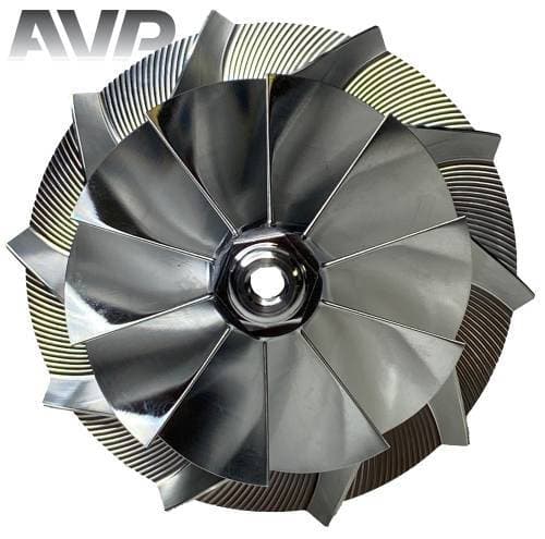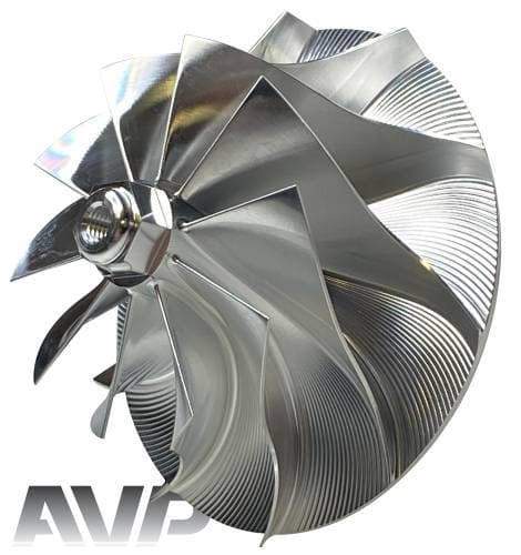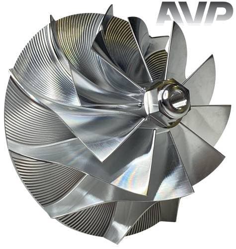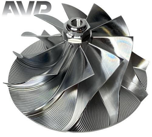 These billet compressor wheels are lighter and much stronger than cast compressor wheels and are designed to flow more air. With a more aggressive blade design and the nose and hub designed to be significantly smaller allowing for larger blade size. The increase of blade surface area allows them to flow more air into the engine. This more efficient wheel lowers the intake temperatures to give you more horsepower and allowing you to stay in the throttle longer.
