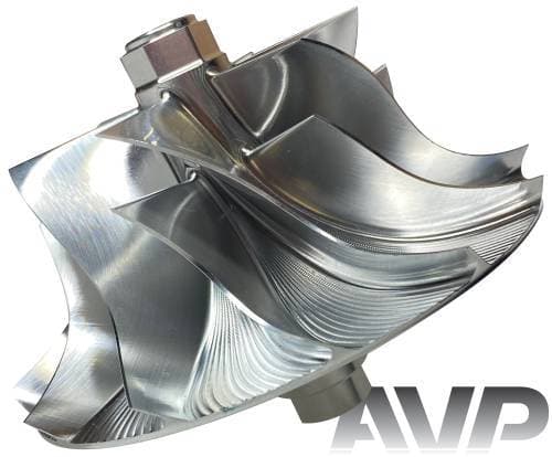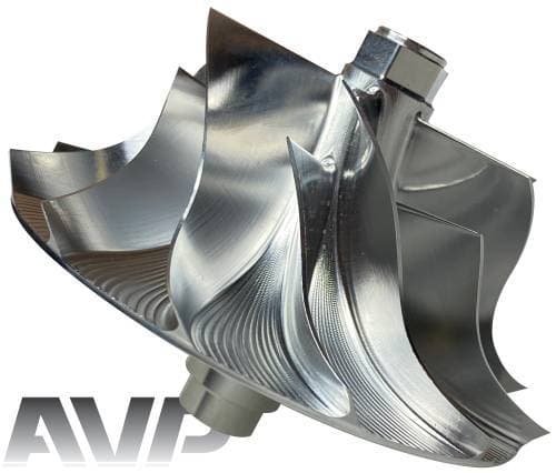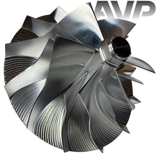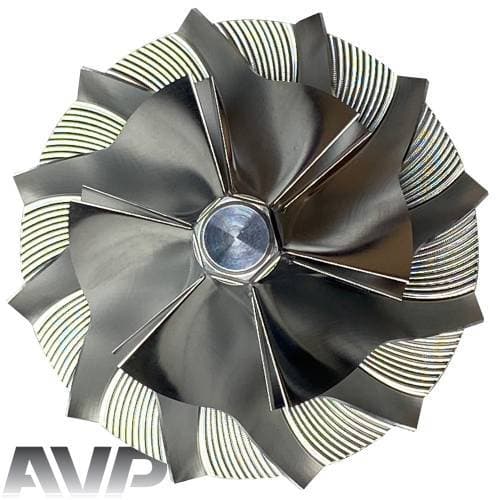 These billet compressor wheels are much stronger than cast compressor wheels and are designed to flow more air. With a more aggressive blade design and the nose and hub designed to be significantly smaller allowing for larger blade size. The increase of blade surface area allows them to flow more air into the engine. This more efficient wheel lowers the intake temperatures to give you more horsepower and allowing you to stay in the throttle longer.