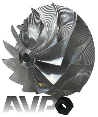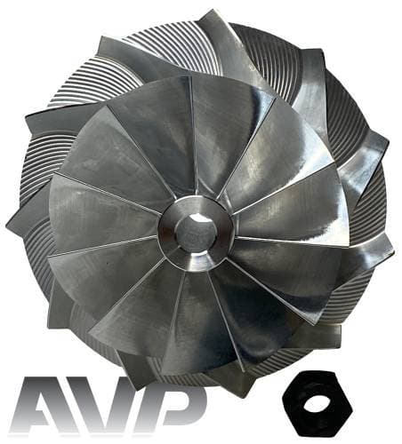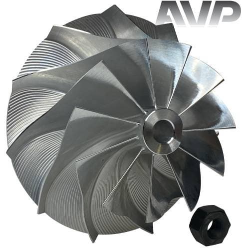 These billet compressor wheels are lighter and much stronger than cast compressor wheels and are designed to flow more air. With a more aggressive blade design and the nose and hub designed to be significantly smaller allowing for larger blade size. The increase of blade surface area allows them to flow more air into the engine. This more efficient wheel lowers the intake temperatures to give you more horsepower and allowing you to stay in the throttle longer.