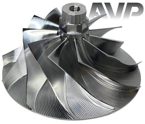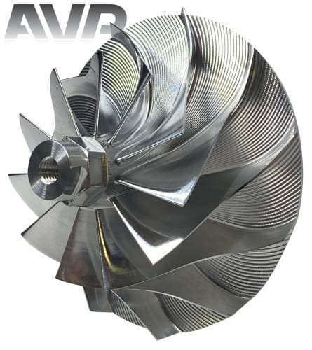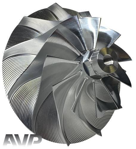 These billet compressor wheels are lighter and much stronger than cast compressor wheels and are designed to flow more air. With a more aggressive blade design and the nose and hub designed to be significantly smaller allowing for larger blade size. The increase of blade surface area allows them to flow more air into the engine. This more efficient wheel lowers the intake temperatures to give you more horsepower and allowing you to stay in the throttle longer.
