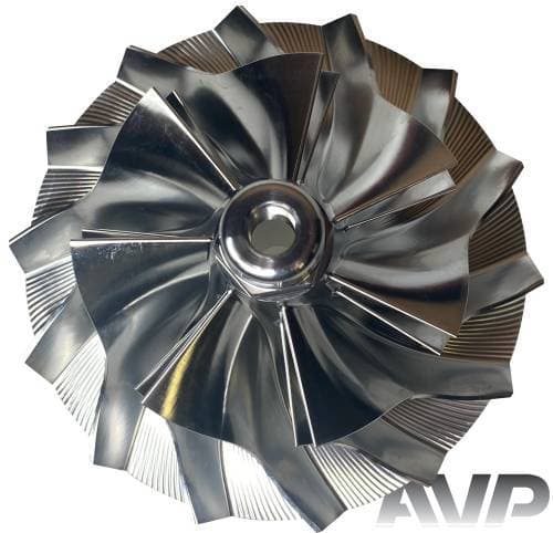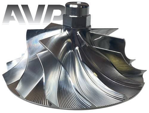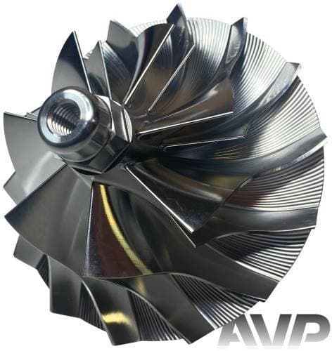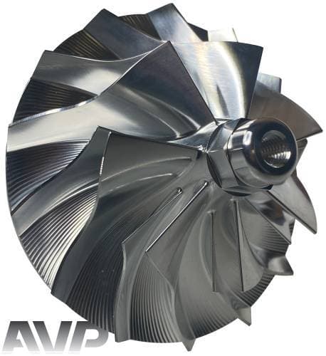 These billet compressor wheels are much stronger than cast compressor wheels and are designed to flow more air. With a more aggressive blade design and the nose and hub designed to be significantly smaller allowing for larger blade size. The increase of blade surface area allows them to flow more air into the engine. This more efficient wheel lowers the intake temperatures to give you more horsepower and allowing you to stay in the throttle longer.