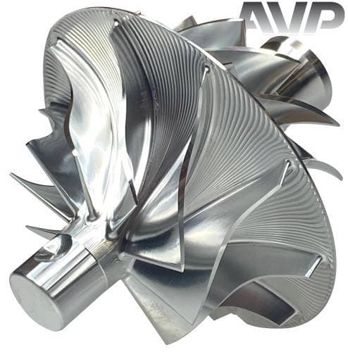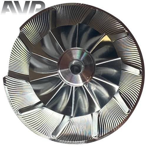 These billet compressor wheels are much stronger than cast compressor wheels and are designed to flow more air. With a more aggressive blade design and the nose and hub designed to be significantly smaller allowing for larger blade size. The increase of blade surface area allows them to flow more air into the engine. This more efficient wheel lowers the intake temperatures to give you more horsepower and allowing you to stay in the throttle longer.