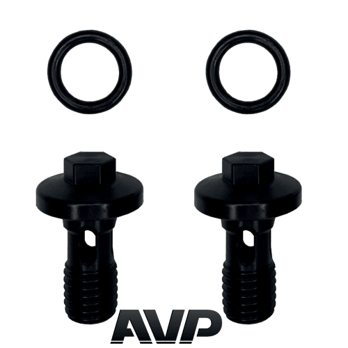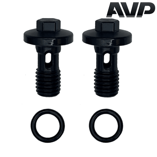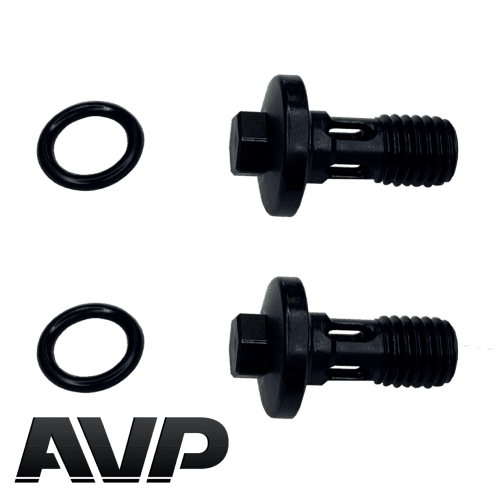 The AVP High Flow Banjo Bolt Kit is designed to upgrade the factory banjo bolts used in the fuel system of 1994–2003 Ford 7.3L Power Stroke diesels. This kit includes two precision-machined, high-flow banjo bolts engineered to allow smoother, more efficient fuel flow by reducing turbulence and restriction at fuel line joints.