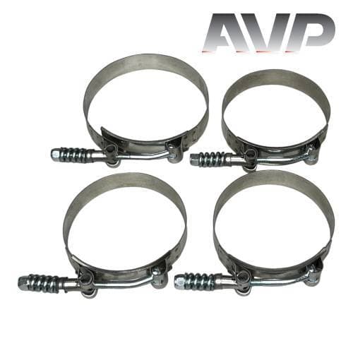 Features stainless steel T-bolt spring tension clamps for secure and durable connections, ensuring optimal reliability under harsh conditions.