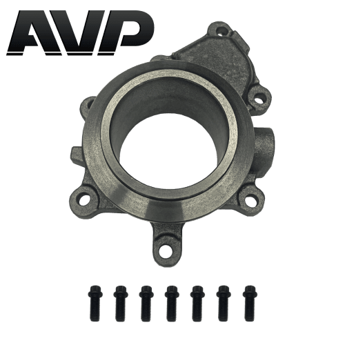 The AVP Non-EBPV Turbo Outlet is a high-flow, bolt-on replacement for the restrictive factory post-turbo butterfly (Exhaust Backpressure Valve, or EBPV) on all 1999–2003 Ford 7.3L Power Stroke trucks running stock GT38 or GTP38 turbos—or the Garrett GTP38R as well as most GT38/GTP38 based after market turbos.
