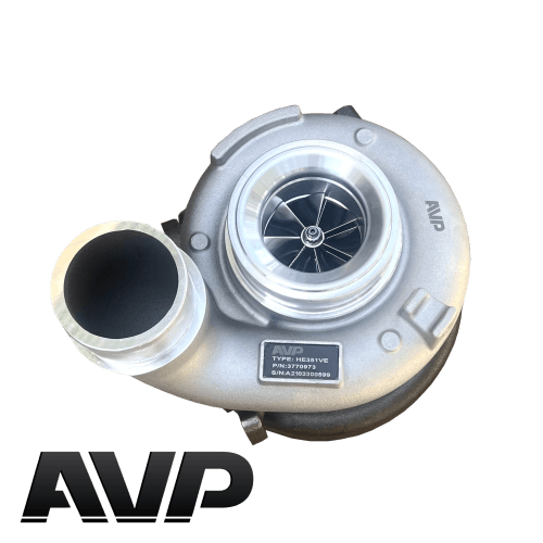 The AVP Stage 1 Performance HE351VE Turbo is a brand new, direct-fit upgrade for 2007.5–2012 Dodge 6.7L Cummins engines. Equipped with the Boost Master Quick Spool 63mm billet 6+6 compressor wheel, this turbo offers a significant improvement in spool-up time, airflow, and overall responsiveness compared to stock.