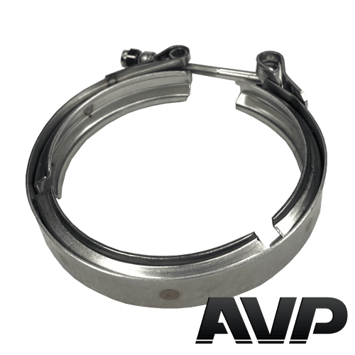The AVP Turbo Outlet V-Band Clamp is engineered as a direct replacement for 2003–2010 Ford 6.0L Power Stroke engines, providing a secure, leak-proof connection where the down-pipe attaches to the turbo/EBPV outlet flange. This heavy-duty clamp is precision-machined for consistent, high-pressure sealing, maintaining optimal exhaust flow and turbocharger efficiency.