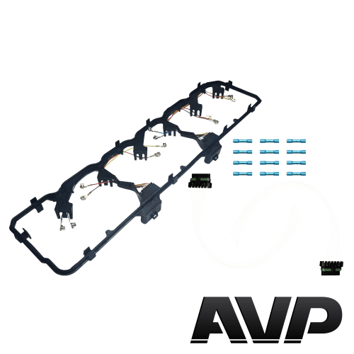 Restore fuel system reliability with the AVP Valve Cover Gasket & Harness Kit for 2006–2018 Dodge Ram 5.9L and 6.7L Cummins diesels. This complete solution includes a premium gasket, two injector harness pigtails, and ten heat shrink butt connectors to eliminate frequent injector issues caused by failing or corroded harness connections.