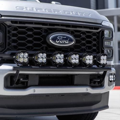 The Baja Designs Bull Bar light kits for the 2023-on Ford F-250/350 Super Duty trucks are designed to complement the aggressive, no-nonsense styling of these work trucks.