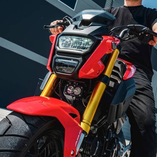 Looking to spice up night riding, or add some daytime safety to your Honda Grom? No sweat! We've come up with a trick mounting solution to get 2,450 lumens of signature Baja Designs performance on the front of your bike without cutting, or drilling. Installation of the S2, bracket, and wiring is a breeze and requires basic hand-tools.