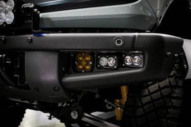 We here at Baja Designs know that you use your Bronco for what it was designed for. That's why we offer the Squadron SAE/Dual S2 Steel Bumper Fog Pocket Light Kit designed specifically for the factory Steel Bumper. Light up the trail, lead the pack, and differentiate yourself from the pack with a set of S2 Sport in spot, a set of S2 Sport in driving combo, and a set of our next generation Squadron SAE.