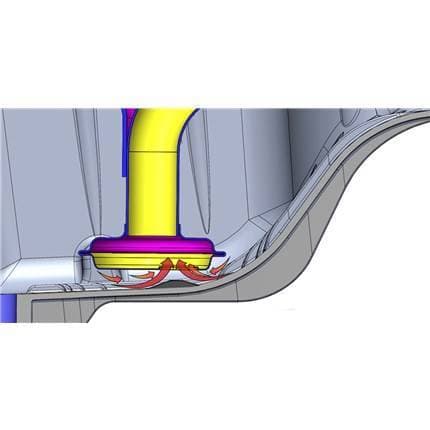 The area under the oil pickup tube features a unique anti-cavitation dimple which smoothly redirects oil flow upwards.