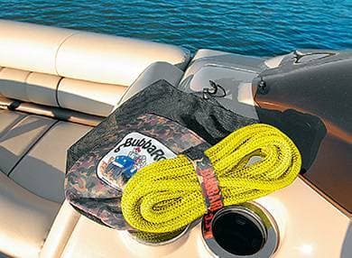 The most powerful marine tow and recovery rope on the market. This amazingly safe and strong water and UV resistant rope is ideal for Pontoon and small pleasure boats. Its also perfect for all types of personal water craft including all sizes of jetskis. What makes this rope so unique is its incredible stretching ability. The Lil Bubba Marine is made from double braided nylon, with spliced loops on both ends with an extra polymer coating that makes it water, UV and abrasion resistant. Its compact size stores easily in your storage locker, seat compartment or attached to your railing. Length is determined when rope is under load. Comes with its own mesh duffle bag.