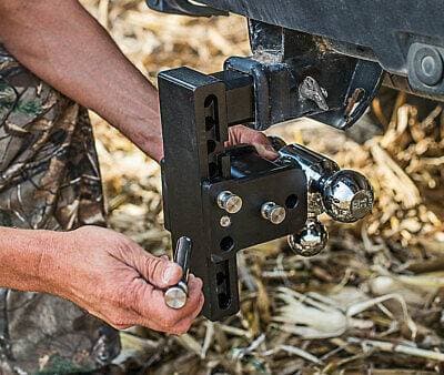 • Raise or lower the hitch in one inch increments for a safe level tow