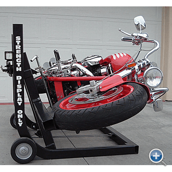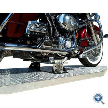 Holds the motorcycle upright with no movement. A standard wheel chock may be used if desired.
