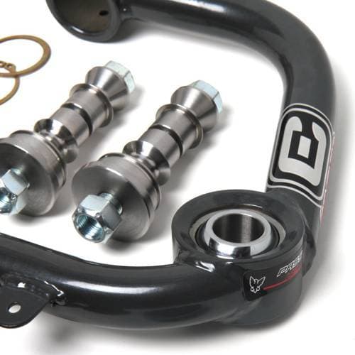 When lifting your truck, the stock upper arms become the limiting factor and hold back your suspensions performance. These Camburg upper arms address those issues and more. Replacing the stock ball-joint with a uni-ball bearing we're able to gain wheel travel with a part that is considerably stronger and will last longer under extreme conditions. These will give more caster and change the camber curve to correct geometry so the vehicle aligns correctly and improves driving characteristics and handling.