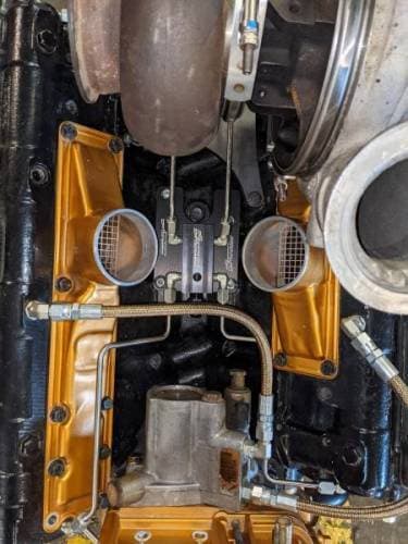 CNC Fabrication 4-Line Feed Valley Mount Fuel Line Kit for Ford 7.3L Power Stroke, Valley Mount, OBS (Black) This kit is for the DIY person wanting to convert their truck to an electric fuel pump system. Pump, regulator, and filters will need to be purchased. •Meant for installation with factory or aftermarket drop-in style turbos to convert to an E-fuel system •Great for all injectors sizes from stock to competition •High quality billet T-6061 aluminum machined in house •Upgraded with aerospace/military grade high flow Genuine Brennan™ compression fittings •Eliminates many leak points from the stock factory fuel pump and fuel bowl •Base plate and distribution manifold are pre-assembled for easier installation •All lines are made of mandrel bent 304 Sandvik Coromat seamless stainless steel tubing •Every single kit is test fit during production to ensure perfect fitment •Comes with all necessary fittings, o-rings for turbo pedestal, bolts, and freeze plug for a complete install. •Test port to measure/set fuel pressure •1/2" AN (-08) inlet for plenty of volume of fuel for unlimited size injectors •Lines are bent right here in our shop on our state of the art 3 axis CNC tubing bender for a perfect fit every time **For Early '99 ONLY, select the Fuel Bowl Relocation Kit from the drop-down menu as an affordable option over a FASS or AirDog fuel pump setup that will retain your factory fuel pump** You can also build your own pump setup if you like. We recommend using a stock Superduty Bosch pump for stock to 160/30 injectors, the AEM 400lph pump for mild built trucks for above 160/30 to 250/100 injectors, or the Fuelab Prodigy pumps for competition running 300cc or larger. We also recommend using Fuelab adjustable regulators. For a more plug-n-play type fuel pump/filter setup we recommend the AirDog II 5G Fuel Pump as it has the filters and regulator built in, a lifetime warranty (as long as you turn in your receipt within 30 days of purchase), and is simple to install. The only thing you need to do with the AirDog II 5G with an OBS is to cut off the "mini fuse tap" wire that is meant for the 99 and newer trucks to an "ATO (regular) fuse tap" for key-on power to send power to the supplied relay, and install the pump as directed by AirDog.