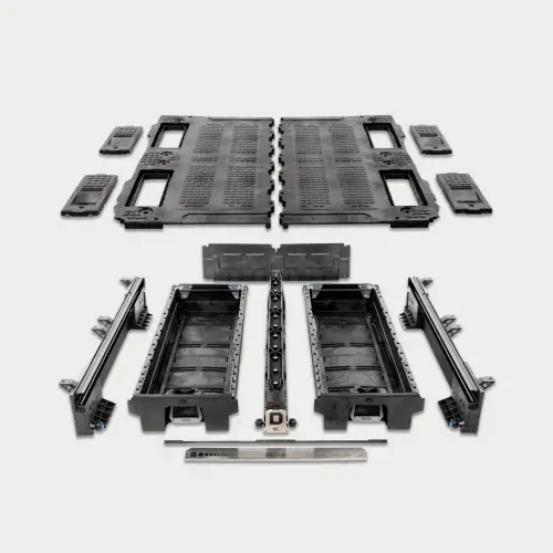 Unmatched Storage & Organization: The XF5 system features two full-length drawers, each supporting up to 200 lbs of tools, gear, or supplies. The deck itself boasts a 2,000 lb payload capacity, letting you haul heavy equipment or materials on top while keeping essentials organized and protected below. Integrated accessories-including the Tan Sixer 16 D-Co case, Tan Halfrack 32 D-Co case, vX Drawerganizer, vX Drawer Dividers, DECKED D-rings, and both deep and shallow stash bins-maximize your ability to customize and organize your cargo for any job or adventure.