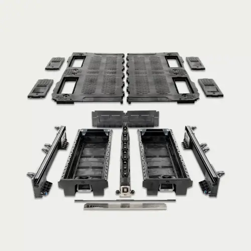 DECKED Truck Bed Storage Drawers & Accessories for Chevy/GMC 1500 Silverado/Sierra (5 FT 9 Inch Bed) Providing secure, weatherproof and organized storage for full-size pickup trucks, the DECKED Drawer System features two lockable, full bed-length drawers capable of carrying 200lbs each. Evenly distributed, the system has a 2,000lb payload-rated deck. Each system includes: 1 Tan Sixer 16 D-Co case, 1 Tan Halfrack 32 D-Co Case, 1 vX Drawerganizer, 2 vX Drawer Dividers, 4 DECKED D-rings, 2 Deep Stash Bins & 2 Shallow Stash Bins. Decked in-vehicle storage systems make it possible for you to work smarter and play harder. These innovative units feature two full bed-length drawers (each with a 200 lb. load rating and cast aluminum handles) that roll out to provide ergonomic access to tools, equipment, and gear—while also providing full use of your truck bed or cargo van. The deck sits just above the wheel wells and offers a true 2,000 lb. payload rating. Decked systems are crafted from high-density polyethylene (HDPE) co-molded to galvanized steel subframes, making them super-rugged and strong. Decked products are designed to live outside in the elements; the exterior will be unaffected by extreme shifts in temperatures, moisture levels, or intense UV exposure. Dozens of models are available for precise fitment in your truck bed application.