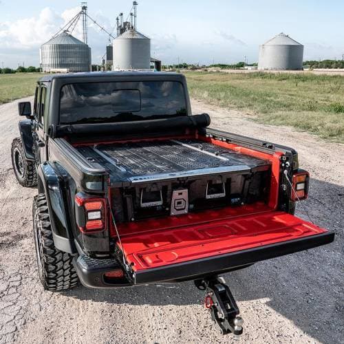 This DECKED truck bed organizer fits a Jeep Gladiator pickup truck with a bed length of 5' manufactured from 2020 to current. It takes a short midsize DECKED system.