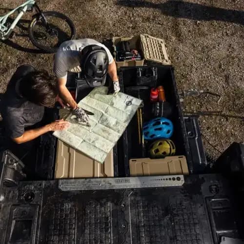 DECKED Truck Bed Storage Drawers & Base Accessory Pack for Dodge/Ram w/ Decked Out Package (6 FT 4 Inch Bed) Providing secure, weatherproof and organized storage for full-size pickup trucks, the DECKED Drawer System features two lockable, full bed-length drawers capable of carrying 200lbs each. Evenly distributed, the system has a 2,000lb payload-rated deck. Each system includes: 1 Tan Sixer 16 D-Co case, 1 Tan Halfrack 32 D-Co Case, 1 vX Drawerganizer, 2 vX Drawer Dividers, 4 DECKED D-rings, 2 Deep Stash Bins & 2 Shallow Stash Bins. Decked in-vehicle storage systems make it possible for you to work smarter and play harder. These innovative units feature two full bed-length drawers (each with a 200 lb. load rating and cast aluminum handles) that roll out to provide ergonomic access to tools, equipment, and gear—while also providing full use of your truck bed or cargo van. The deck sits just above the wheel wells and offers a true 2,000 lb. payload rating. Decked systems are crafted from high-density polyethylene (HDPE) co-molded to galvanized steel subframes, making them super-rugged and strong. Decked products are designed to live outside in the elements; the exterior will be unaffected by extreme shifts in temperatures, moisture levels, or intense UV exposure. Dozens of models are available for precise fitment in your truck bed application.