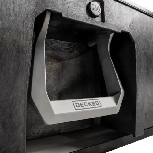 DECKED Truck Bed Storage Drawers & Base Accessory Pack for Dodge/Ram 1500 w/ Rambox (5 FT 7 Inch Bed) Providing secure, weatherproof and organized storage for full-size pickup trucks, the DECKED Drawer System features two lockable, full bed-length drawers capable of carrying 200lbs each. Evenly distributed, the system has a 2,000lb payload-rated deck. Each system includes: 1 Tan Sixer 16 D-Co case, 1 Tan Halfrack 32 D-Co Case, 1 vX Drawerganizer, 2 vX Drawer Dividers, 4 DECKED D-rings, 2 Deep Stash Bins & 2 Shallow Stash Bins. Decked in-vehicle storage systems make it possible for you to work smarter and play harder. These innovative units feature two full bed-length drawers (each with a 200 lb. load rating and cast aluminum handles) that roll out to provide ergonomic access to tools, equipment, and gear—while also providing full use of your truck bed or cargo van. The deck sits just above the wheel wells and offers a true 2,000 lb. payload rating. Decked systems are crafted from high-density polyethylene (HDPE) co-molded to galvanized steel subframes, making them super-rugged and strong. Decked products are designed to live outside in the elements; the exterior will be unaffected by extreme shifts in temperatures, moisture levels, or intense UV exposure. Dozens of models are available for precise fitment in your truck bed application.