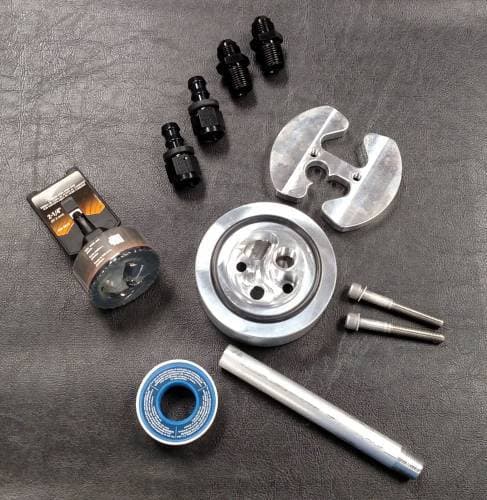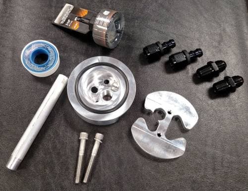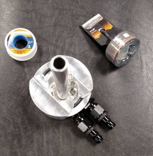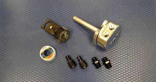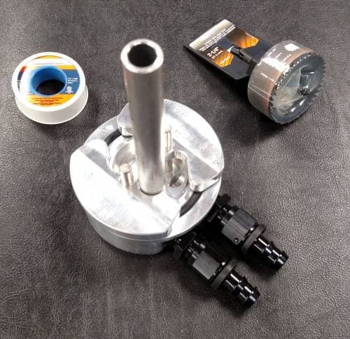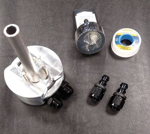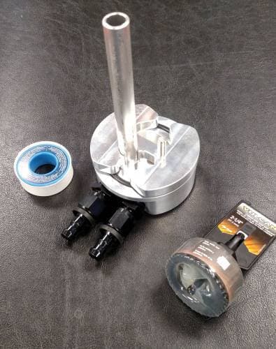 Simplest kit on the market to install a sump for your upgraded fuel system. You don't need to drop the fuel tank and there is no ring of bolts to install like with other kits. Simply hole saw the bottom of the tank and put the sump clamps in place, and tighten the 2 bolts. The integrated return eliminates the need to run the return from your aftermarket fuel pump to the top of the tank or cut into the fuel filler neck. This reduces install time tremendously. The returned fuel is sent up the "stack" to reduce aeriated fuel from entering right back into the inlet fitting. This kit also features a "clamp in o-ring style seal" instead of the competitions "ring of bolts". To install this sump you simply drill 1 hole into your tank (hole saw included), slip the clamp into the tank and bolt up the sump. This makes for a quick, easy, leak free bottom sump.
