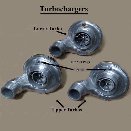 Over the past year we have made many improvements to our Triple Turbo kits, from our first release. These include new oil drains, different wheel sizes, different wastegate designs. We have a kit that will bolt on and run excellent for years under high horsepower applications.