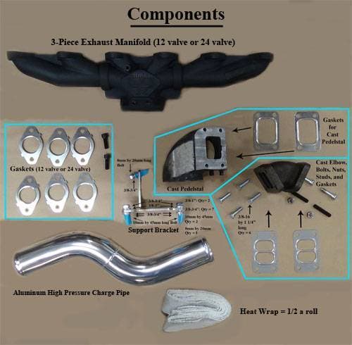 The kits with Triple 66 turbos are capable of flowing 3850 CFM. For comparison sake, the stock turbo on a 2003-07 5.9L Cummins flows appx. 580 cfm.