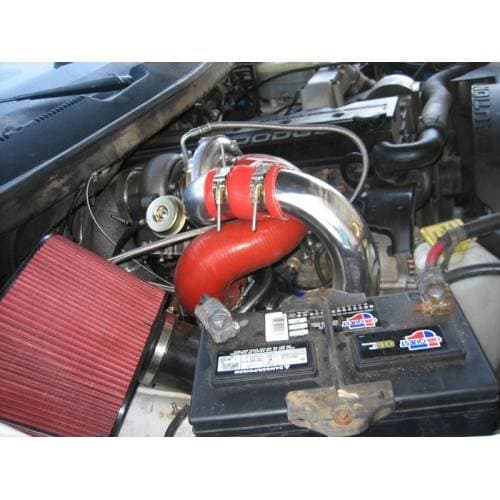 •Air tubing between primary and secondary turbos is silicone with Kevlar liner. Tubes are very sticky and won't blow off under pressure, and come in a variety of colors. NEW...now the high pressure intercooler tube is a polished aluminum tube!!!