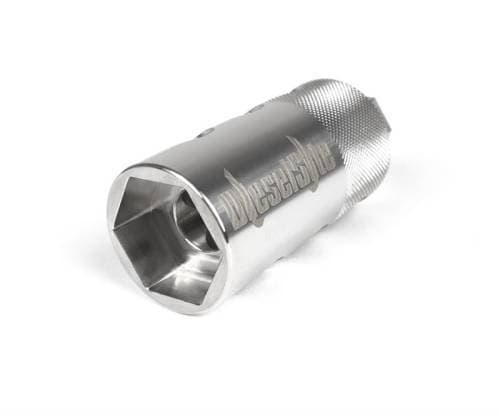 This socket cradles the IPR like a spark plug socket fits a spark plug, preventing damage and unintended bending or warping. It has a 3/8" ratchet drive as well as a 19mm or 3/4" hex drive which is the same drive as the IPR nut. This shortens the list of tools needed as well as allows the use of swivel head ratchets or wrenches making the job easy to do even in a fully assembled stock engine valley.