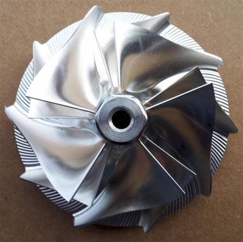 Dieselsite Wicked Wheel 2 Performance Compressor Wheel for Ford 7.3L Power Stroke, Stock Turbo • New Design • Lower EGT's • Faster Spool • Machined billet aluminum • Improved Power and Performance • Not just a billet copy of the original • Includes Pedestal O-Rings Fits TP38, GT38, & GTP38 *This was part number WW2, part number was changed to WW38.