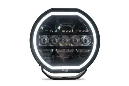 DV8 Offroad 7-Inch Halo Elite Round Light w/ Accent Halo - Pair Our 7” Halo Elite Round Lights can be paired with light brackets or off-road bumpers/bull bars with round light mounts to enhance your visibility when in dim or dark conditions. Our lights feature an amber or clear halo light that can be activated when the main light is not in use. This accent mode is perfect when you are cruising down well-lit neighborhoods or city streets during the day. The main LED lights produce 3,600 lumens, and they are rated at 50,000 hours of use. The combo flood and spot light pattern allows you to identify obstacles far ahead when off-road while also keeping an eye out for ditches, animals, and other hazards present on both sides of the trail. Our round lights are IP 68 rated, meaning they are water and dust resistant. They emit 5700K, bright white color for clearly illuminating obstacles. The lights are built for the harsh off-road environment with their shatterproof UV resistant polycarbonate lens and weather resistant plug. The durable aluminum housing is finished in a resilient satin black powder coat for a sleek look. With our Elite Round Lights, you can safely navigate low-light terrain while elevating your rig’s aesthetic in the city by toggling between the driving and off-road light modes. * Please Note: The amber or clear halo light will turn off when the main light is activated. ** Please Note: Proper wiring is necessary for safe usage of the round light.