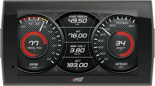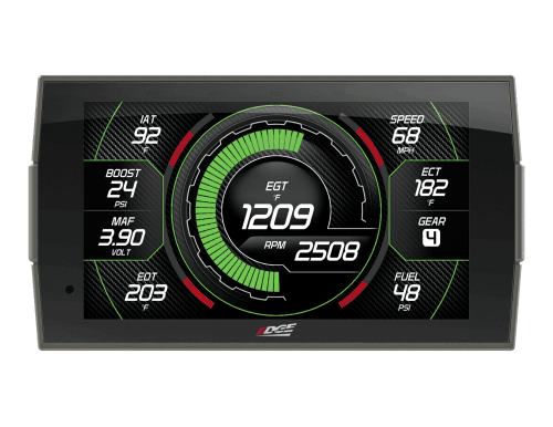 If you're looking for a product to improve throttle response, add extra power when towing or racing down the track, increase fuel economy, or just improve the overall drivability of your truck then the Evolution is the option. Not only do you get these increase performance features but you get a monitor that offers a clean simple solution for gauges like EGT (exhaust, gas, temperature), boost readings, transmission temp, load percent, percentage of fuel left and more, with the expandability to even add more with our EAS (expandable accessory system) or Edges backup camera.