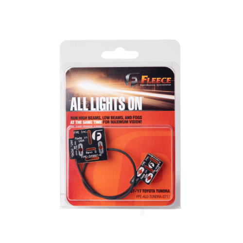 The Fleece Performance All Lights On is now available for 2007-2017 Toyota Tundra equipped with factory installed fog lamps. Simply install the All Lights On module to allow your high-beams, low-beams and fog lamps to simultaneously illuminate the road ahead. Once installed the All Lights On module will keep your fog lamps on when you turn on your high-beams. When the high-beams are NOT turned on your low-beams and fog lights will function normally. Brighten up your driving experience with this simple upgrade inside your under-hood relay box.