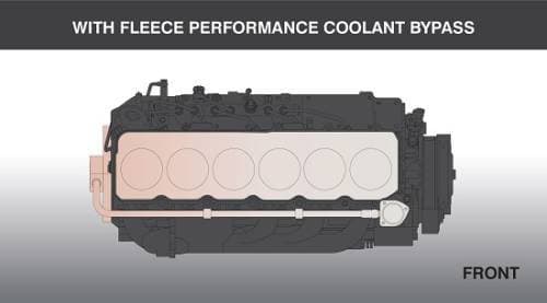 Fleece Performance Coolant Bypass for Dodge/Ram 2500/3500 5.9L Cummins (Automatic Transmission w/ Stainless Steel Braided Line) Increased Coolant Flow, Decreased Coolant Temperatures The rear cylinders on the 5.9/6.7L Cummins suffer from a lack of coolant flow, and therefore, experience the highest coolant temperatures. This can cause excessive pressure to build in the cooling system, especially the rear of the block and blow out freeze plugs externally, or the smaller diameter plugs under the valve cover, leading to a failure. Our coolant bypass kit adds a secondary thermostat, that unlike other brands, works based on temperature instead of excessive pressure. This solves the problem before pressure becomes an issue by ensuring consistent temperatures across all six cylinders.