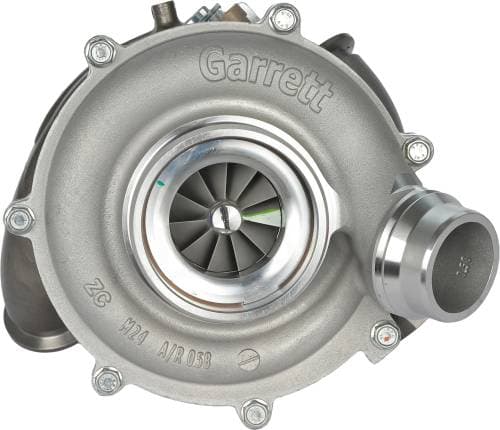 The Garrett stock remanufactured turbocharger is a direct-fit replacement for 2017–2019 Ford F-250 and F-350 6.7L Power Stroke pickup trucks, built to restore factory performance and reliability. Using the same style variable geometry design and housing layout as the original turbo, it bolts to the factory manifolds, downpipe, and charge system, preserving OEM spool characteristics, exhaust brake function, and emissions compatibility when paired with the correct calibration.