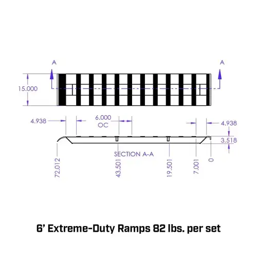 •12′ Ramps: 144″ Long x 15″ Wide x 3.5″ Thick